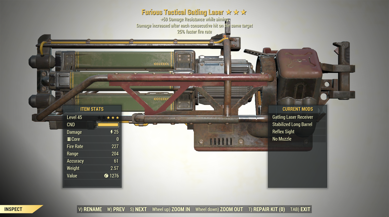 3* Furious GATLING LASER 25% Faster Fire Rate [+50DR] Fallout 76 (PC)